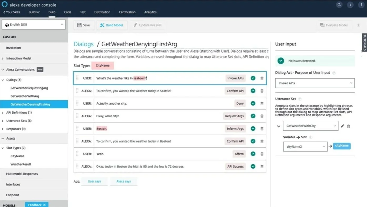 As a senior user experience designer for Amazon Alexa Skills Kit, I was responsible for designing the developer experience for Skill Builders to create skills using Alexa Conversations – an AI-driven, deep-learning approach to dialog management that enables more natural, human-like, two-way, and multi-turn voice interactions. Instead of relying on hard-coded paths, it allows users to speak in unconstrained ways, handles context switching, and maintains memory over long conversations.